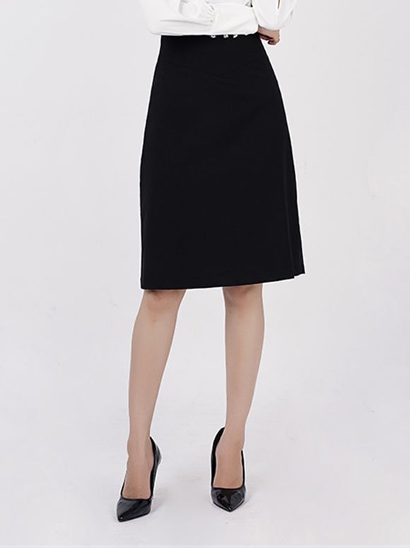 - Chân váy công sở có dáng dài ôm vừa vặn và độ xòe vừa phải giúp mang đến vẻ thanh lịch.